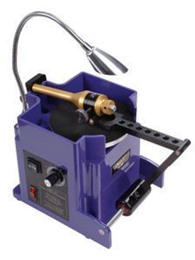 This machine is a 'flat hone' Sharpener, which produces a much better more consistent edge, than a sharpening wheel system, as the hole edge is in contact with the flat surface of the machine, it also has multiple speed and grit size options, which enabled it to sharpen a wider variety of Scissors, including 'curved', 'thinners' and 'chunkers'.